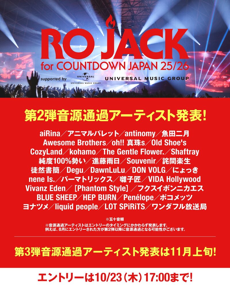 【RO JACK for COUNTDOWN JAPAN 25/26 supported by UNIVERSAL MUSIC JAPAN】 第1次音源審査通過